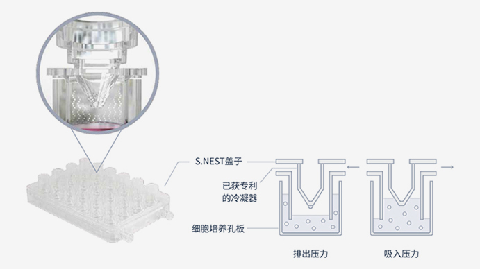 S. The NEST lid comes in two sizes: 96 fluid channel or 24 fluid channel, which can be used for corresponding culture plates. The patented condenser design in the fluid channel can effectively reduce liquid evaporation. During each mixing process, the condensate collected on the surface of the condenser is circulated back into the culture.